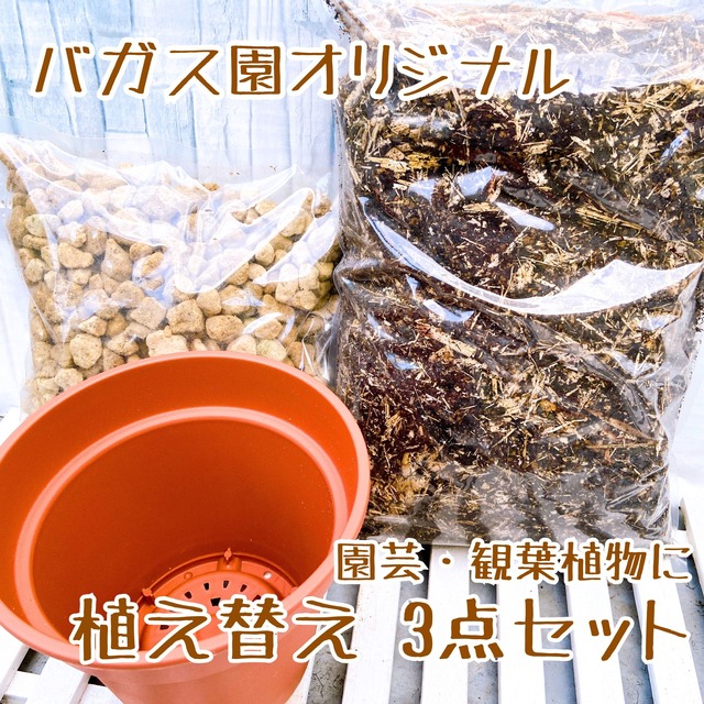 【お買い得セット♫】バガス園 奄美大島産 オリジナル「園芸&観葉植物用 植え替え 3点セット」 園芸 ガーデニング 観葉植物 家庭菜園 プランター 野菜 花 初心者向け ガジュマル シンゴニウム ポトス ドラセナ ティーリーフ クワズイモ サトウキビ