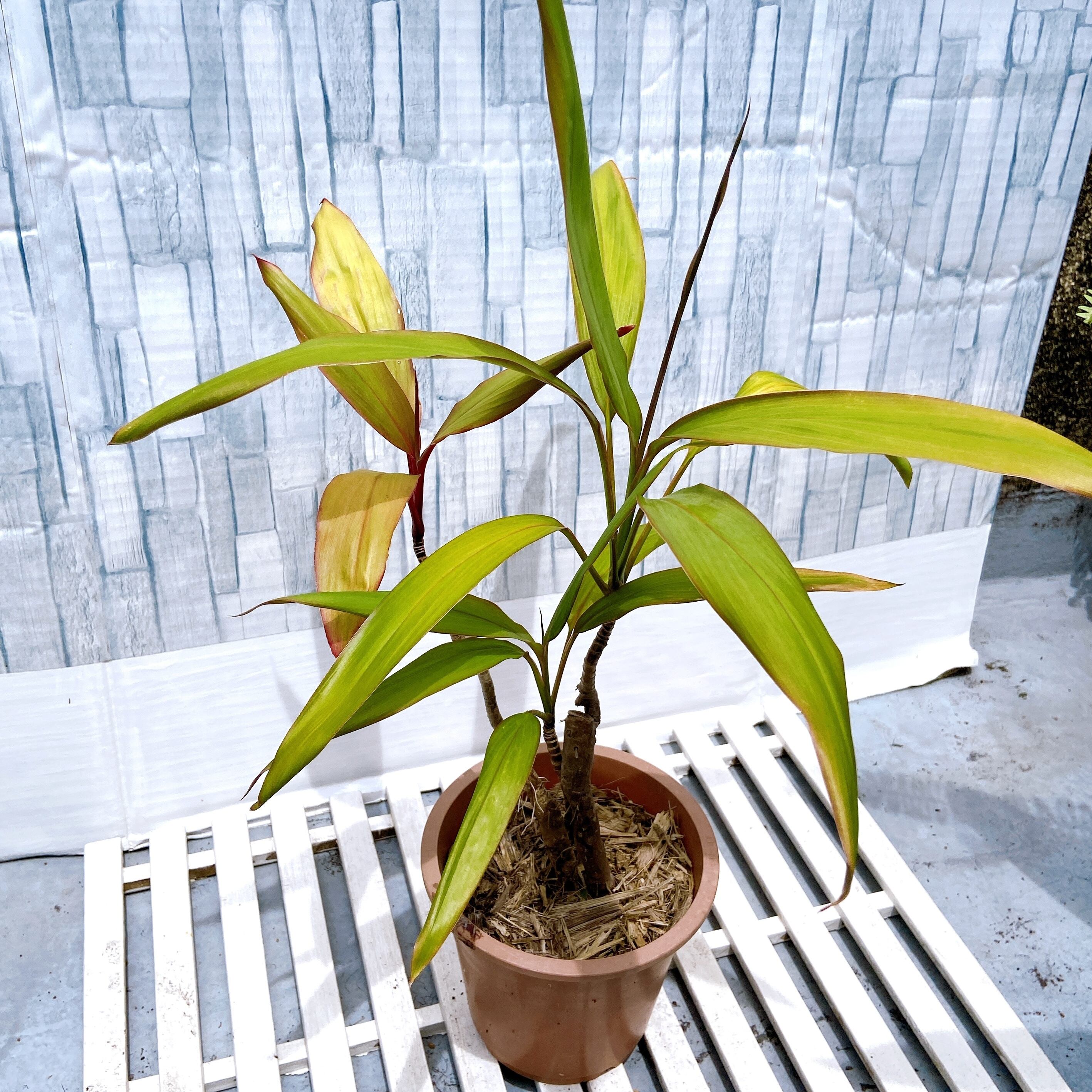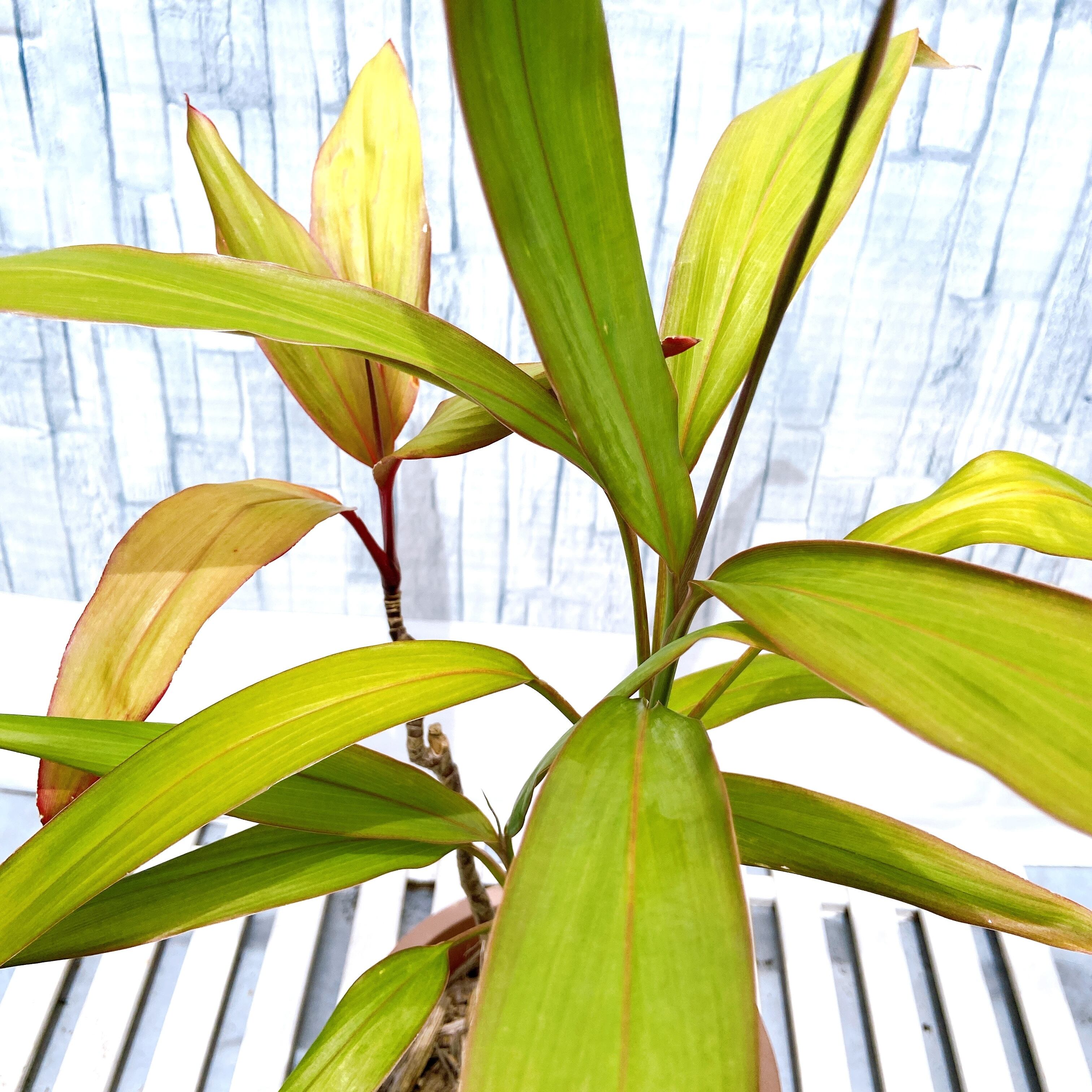 【奄美大島産:ティーリーフ 5号鉢】 ハワイアン&南国気分を味わえる♡ 綺麗な幅広い黄緑の葉が魅力的 観葉植物 鉢植え ドラセナ コルジリネ ハワイアンプランツ アトム レッドエッジ 夏